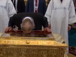 Kısa bir ziyarette bulunan Putin kalıntıları öpüp bir mum yaktıktan sonra katedralden ayrıldı.