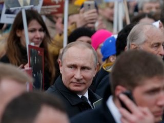 Rusya Devlet Başkanı Putin de yürüyüşte İkinci Dünya Savaşı'nda ölen babası Vladimir Spiridonovich Putin'in pankartını taşıdı.