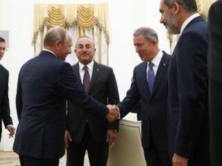 Putin, başkent Moskova’da bulunan Dışişleri Bakanı Mevlüt Çavuşoğlu, Milli Savunma Bakanı Hulusi Akar ve MİT Başkanı Hakan Fidan'ı Kremlin Sarayı’nda kabul etti.