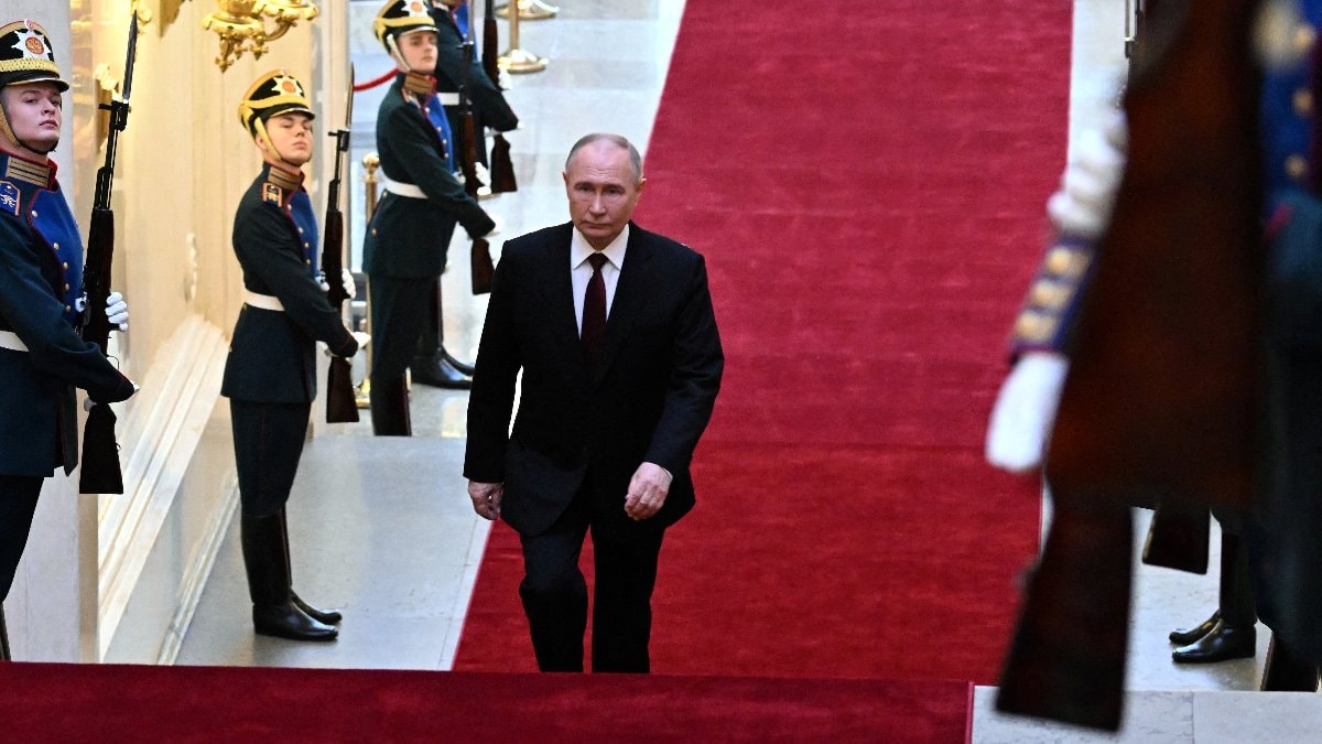 Putin, beşinci kez devlet başkanlığı görevine başladı. Törene, Putin'in merdivenlerde ilerlediği görüntüler damga vurdu.
