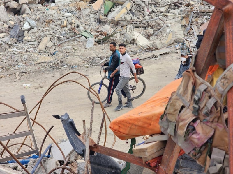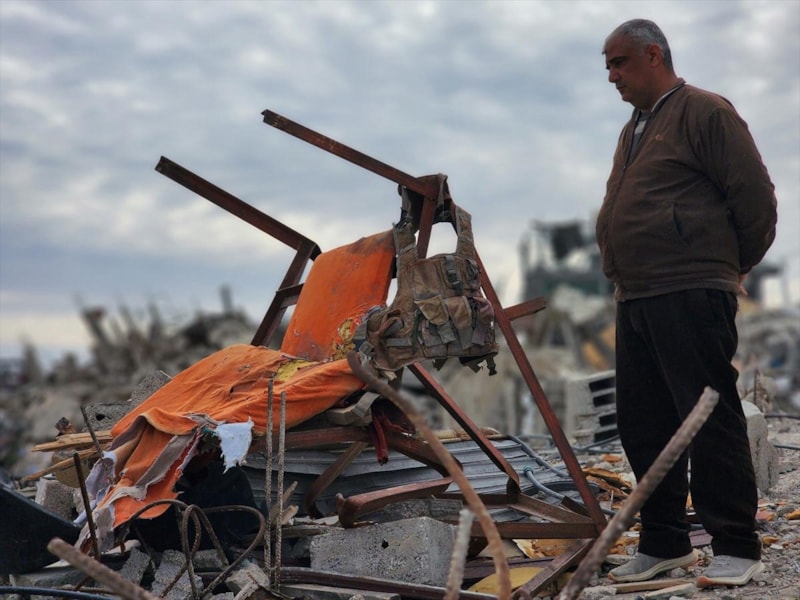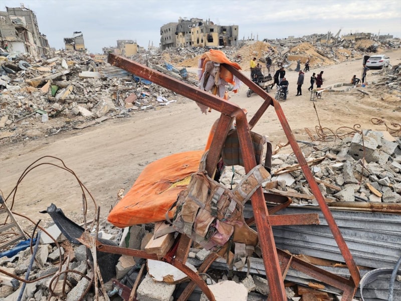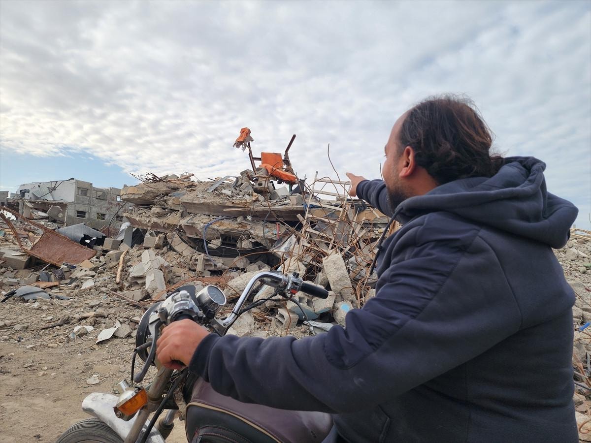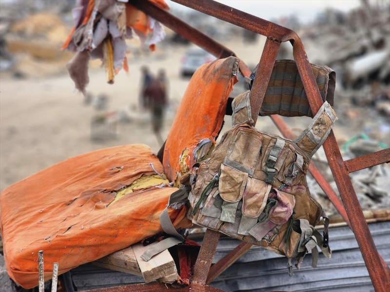 Ebu Taha, çocuklarının, İsrail'in yıktığı evin enkazı altında kalan koltuğu, askeri yeleği ve yırtık elbiselerin bir kısmını büyük zorluklarla çıkardığını dile getirdi.