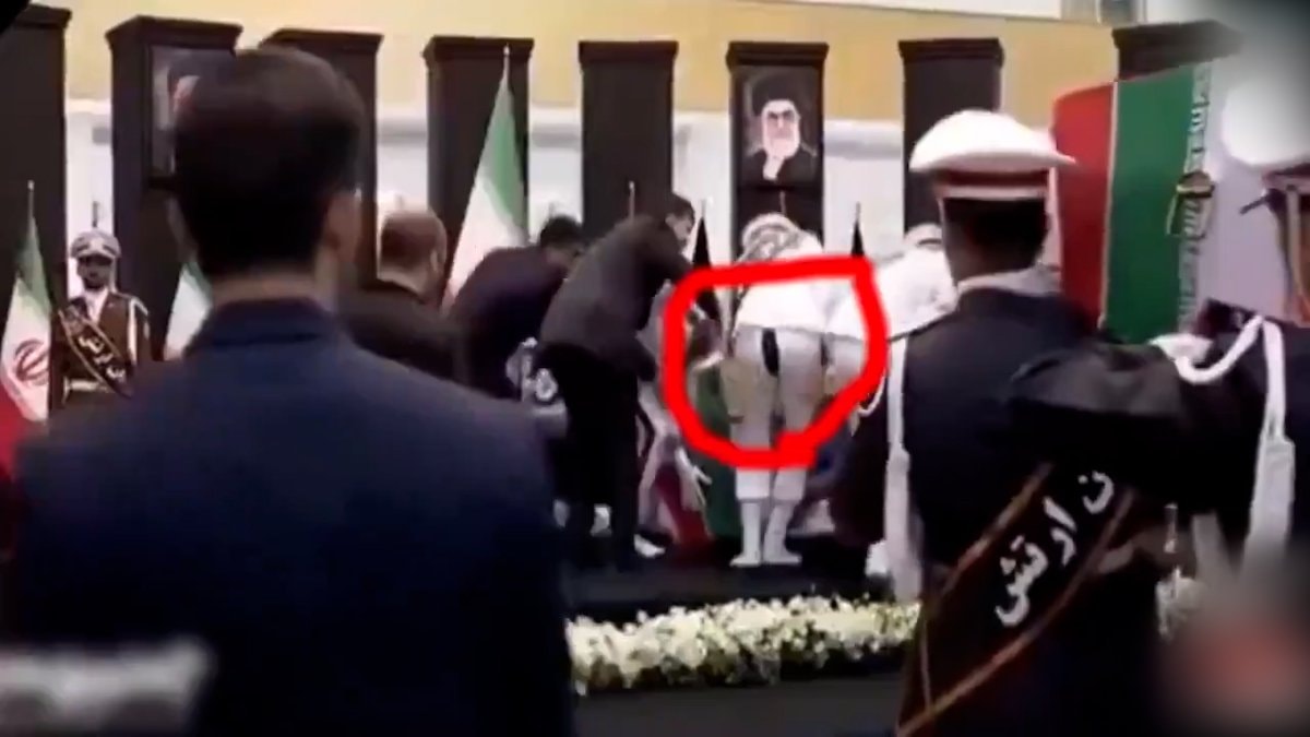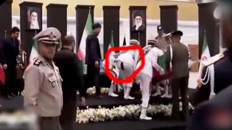 İran Cumhurbaşkanı Reisi'nin cenaze töreninde pantolonu yırtılan asker, görevini bırakmadı.