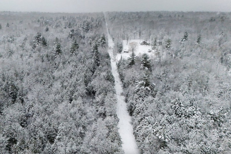 4 Şubat'ta New York'taki Champlain'de Kanada ve ABD arasındaki sınırı belirleyen ağaçların arasındaki bir açıklığı gösteren drone görüntüsü.