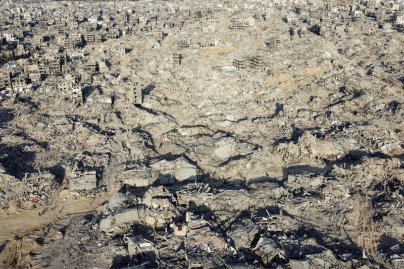 İsrail ve Hamas arasında sağlanan ateşkesin ardından, Gazze Şeridi'nin kuzeyindeki Cebelia'da evler ve binalar harabe halinde, 19 Ocak.