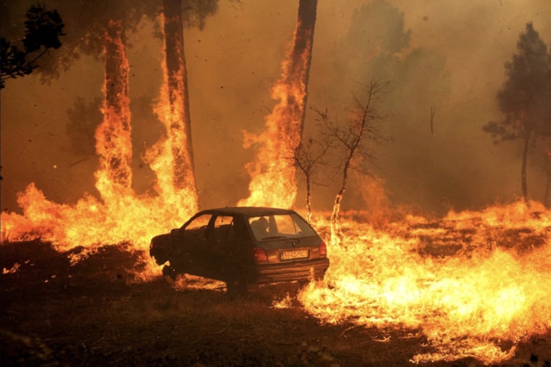Portekiz'in Meda kentinde çıkan orman yangını sırasında bir araba yanıyor, 15 Ağustos.