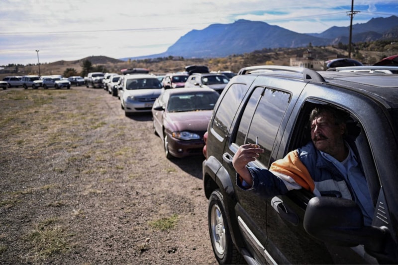 Randy Binder, ABD hükümetinin haftalarca süren kapanmasının ardından, 7 Kasım'da Colorado Springs, Colorado'daki Mt. Carmel Gaziler Hizmet Merkezi gıda dağıtım noktasında 100'den fazla aracın oluşturduğu saatlerce süren kuyrukta beklerken sigara içiyor.