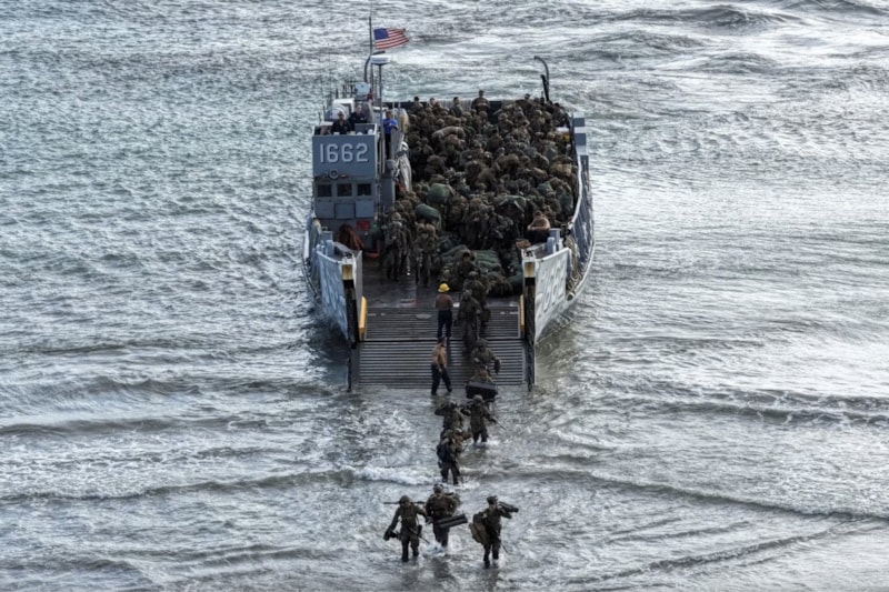 9 Aralık'ta Porto Riko'nun Arroyo kentinde amfibi operasyonlar sırasında ABD Donanması'na ait bir çıkarma gemisinden (LCU) karaya çıkan ABD Deniz Piyadeleri.