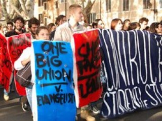 Roma'nın çeşitli yerlerinde öğretmenler, öğrenciler ve sendika temsilcileri, kemer sıkma önlemlerine karşı "Kesintilere Hayır!", "Toplumsal Savaş Geliyor!" şeklinde sloganlar atarak yürüyüşe geçti.
