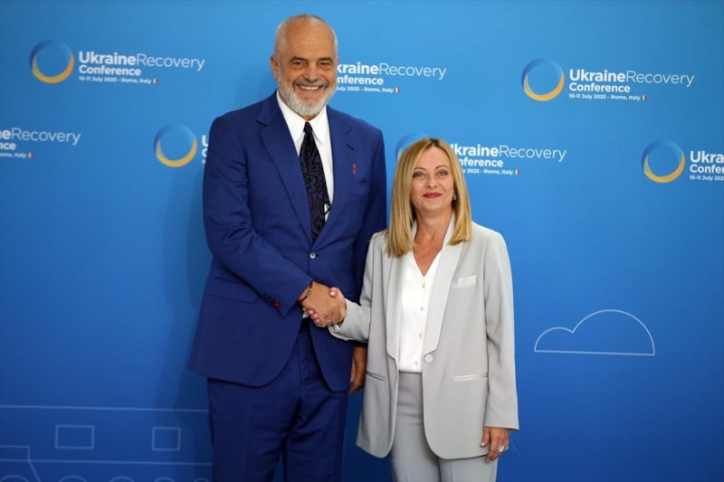 Ukrayna'nın Yeniden İnşası Konferansı için gittiği Roma'da İtalya Başbakanı Giorgia Meloni'yi diz çökerek selamlayan Arnavutluk lideri Edi Rama, Tiran'daki toplantıda da Meloni'yi kırmızı halıda alışılmadık bir jestle karşılamıştı.