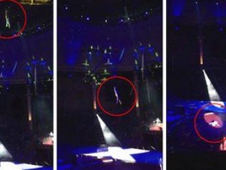 Rusya'nın başkenti Moskova'daki sirkte bir akrobatın güvenlik ağının yırtılması sonucu yere çakılması amatör kameraya yansıdı.