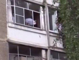 Bebeğini pencereden atmak isteyen babayı polis engelledi VİDEO
