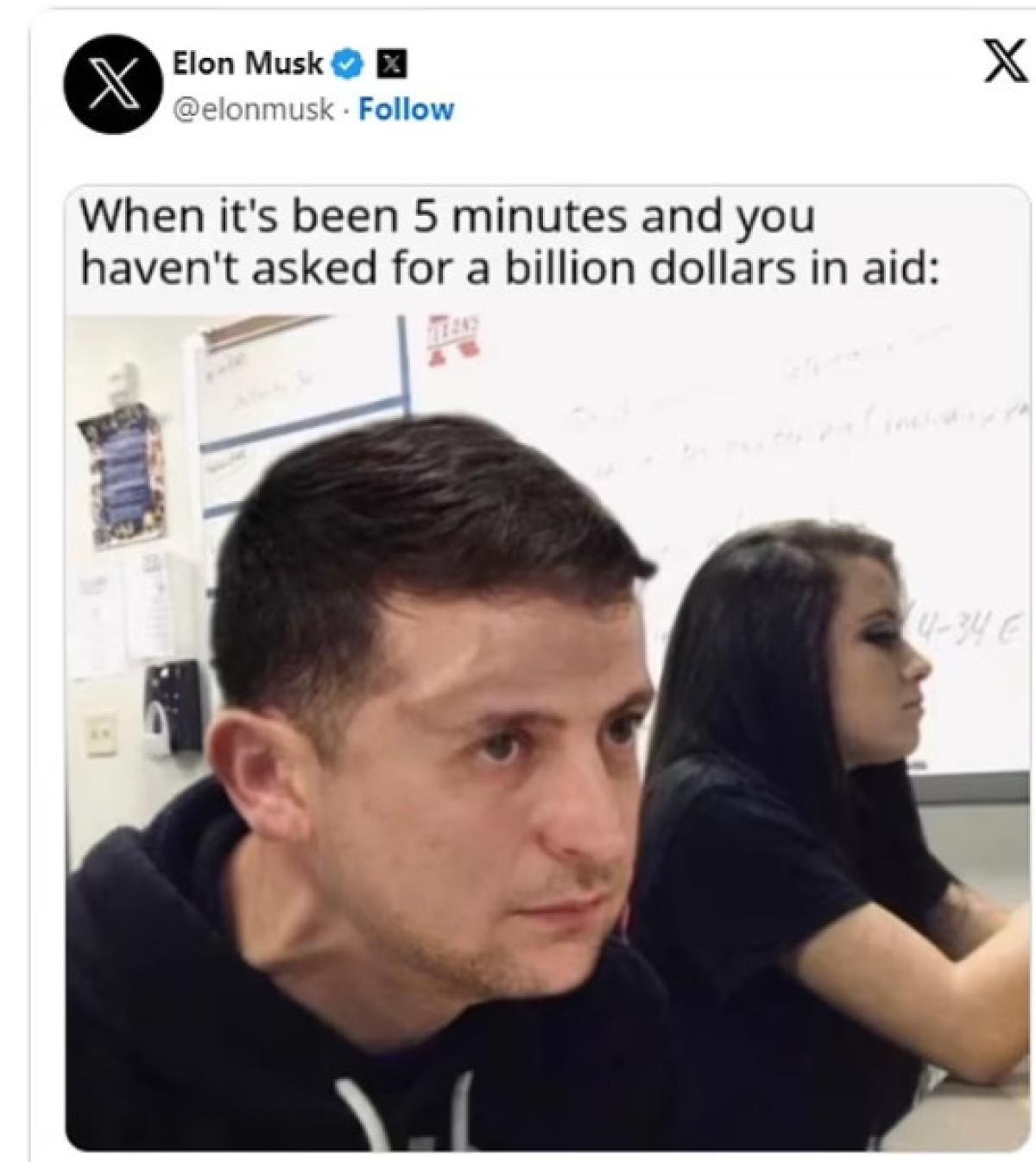 Tesla ve SpaceX'in kurucusu Elon Musk, her fırsatta destek çağrısı yapan Zelensky ile dalga geçti.