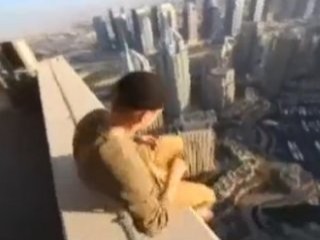 Dubai'de metrelerce yükselikteki bir gökdelenin zirvesine çıkan Rus genç, adeta ölümle dans etti.