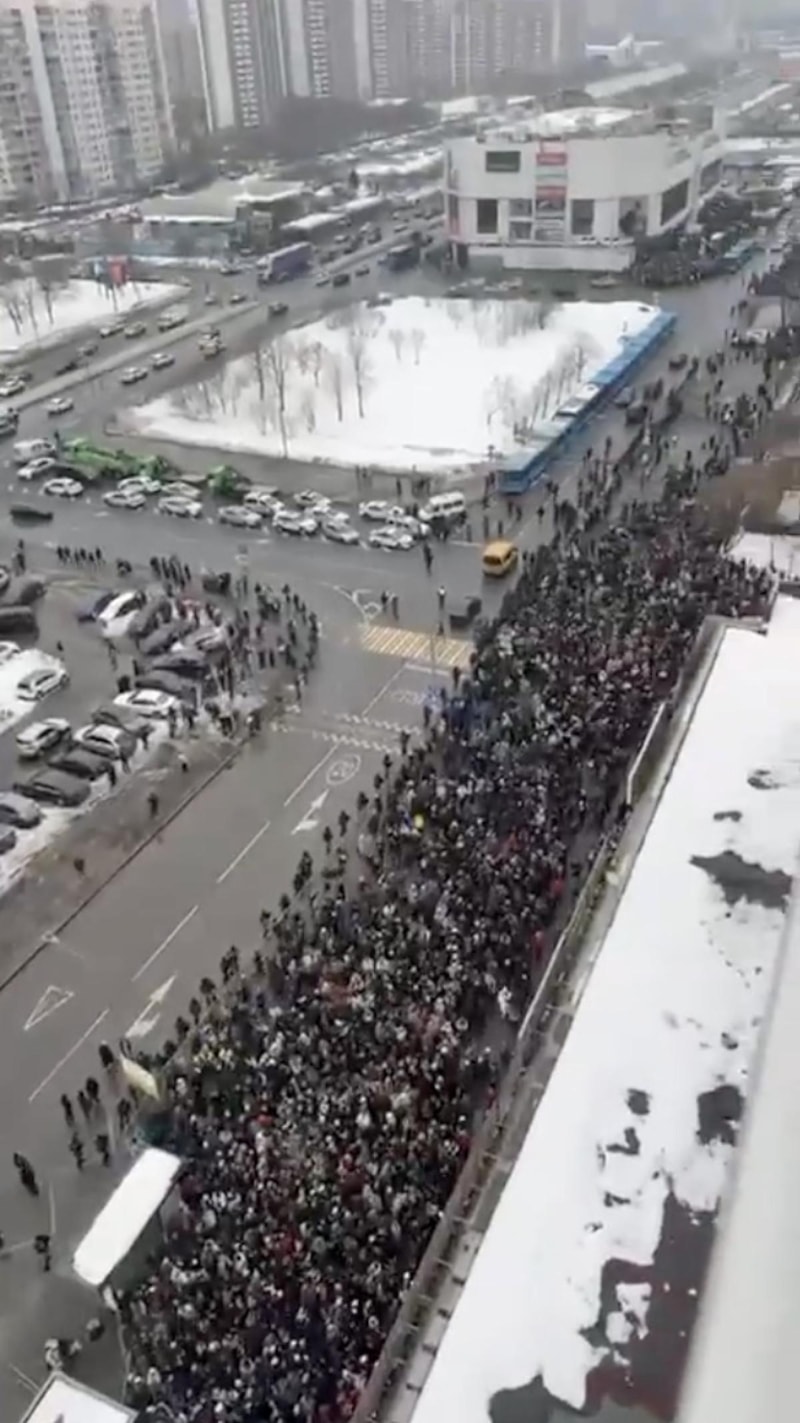 Törene Navalny'nin ailesi ve yakınlarının dışında binlerce Rus muhalif katıldı. Cenazenin geleceği kilisenin etrafında toplanan binlerce Navalny destekçisi sloganlar attı, metrelerce kuyruk oluşturdu.