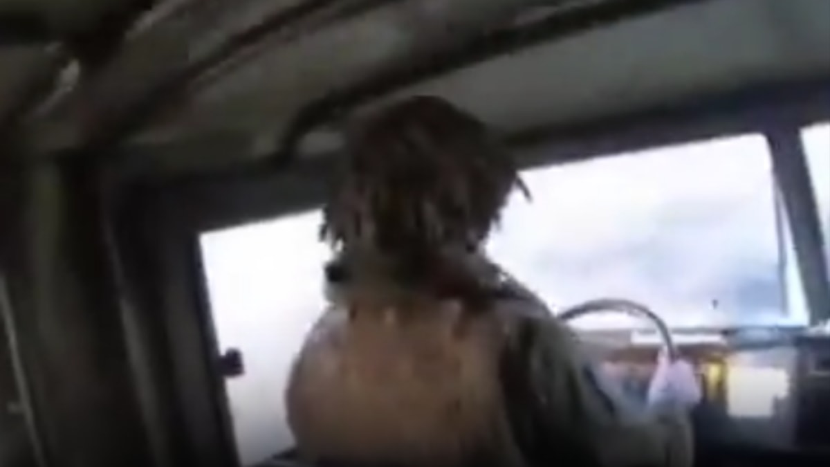 Ukraynalı askerleri taşıyan araç ilerlerken, mühimmat yüklü bir drone, Rus askerlerince araca doğru atıldı.