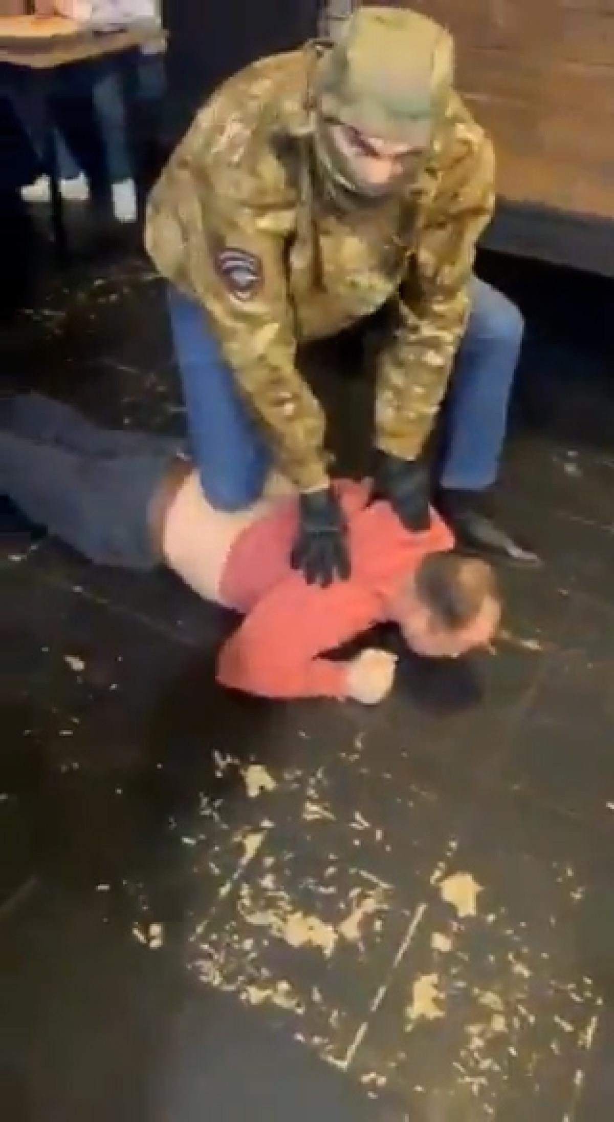 Baskında kulüp üyeleri sıraya sokulurken kimileri de ters kelepçe ile gözaltına alındı.