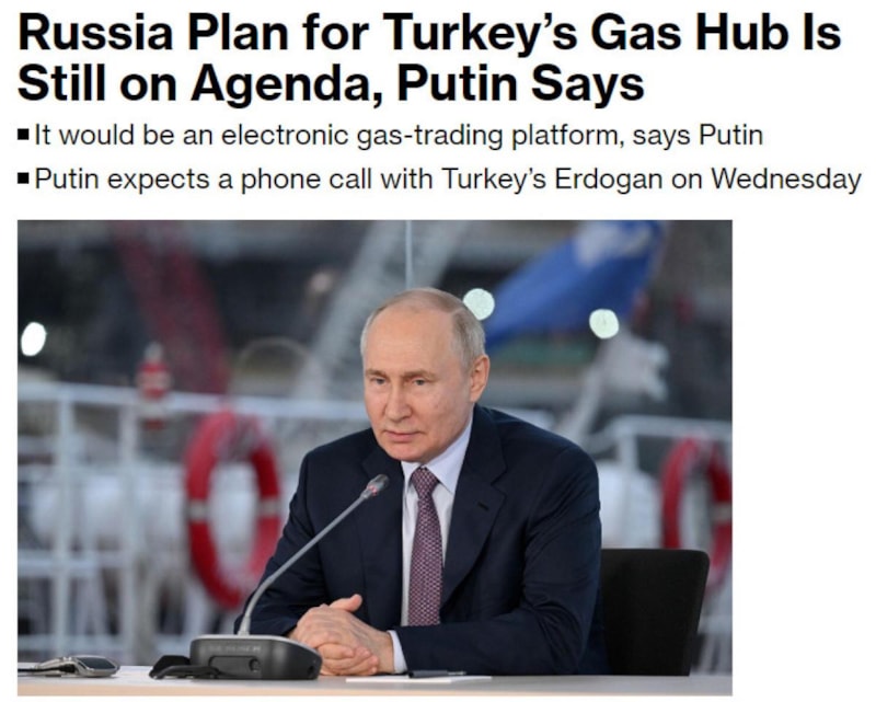 ABD merkezli Bloomberg, "Gaz üssü planı gündemde kalmaya devam ediyor" başlıklı haberinde, Putin'in, bunun elektronik bir gaz ticaret platformu olacağını söylediği belirtildi.