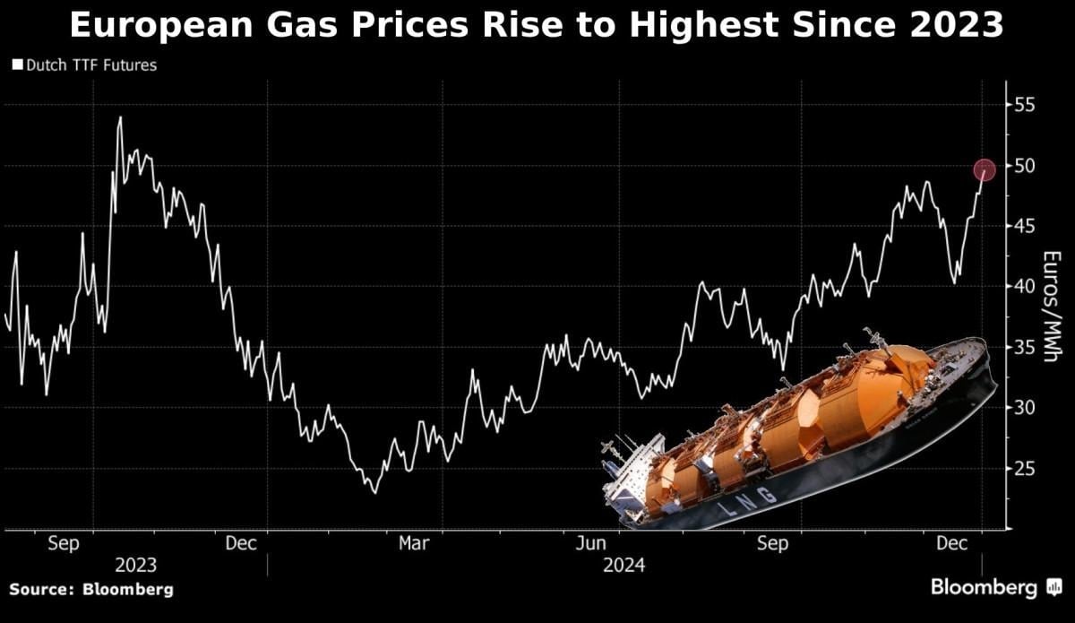 Fransa'nın da aralarında bulunduğu bir çok ülkede doğalgaz fiyatları çok az bir artışla megavat saat başına yaklaşık 50 euro ile kapandı.