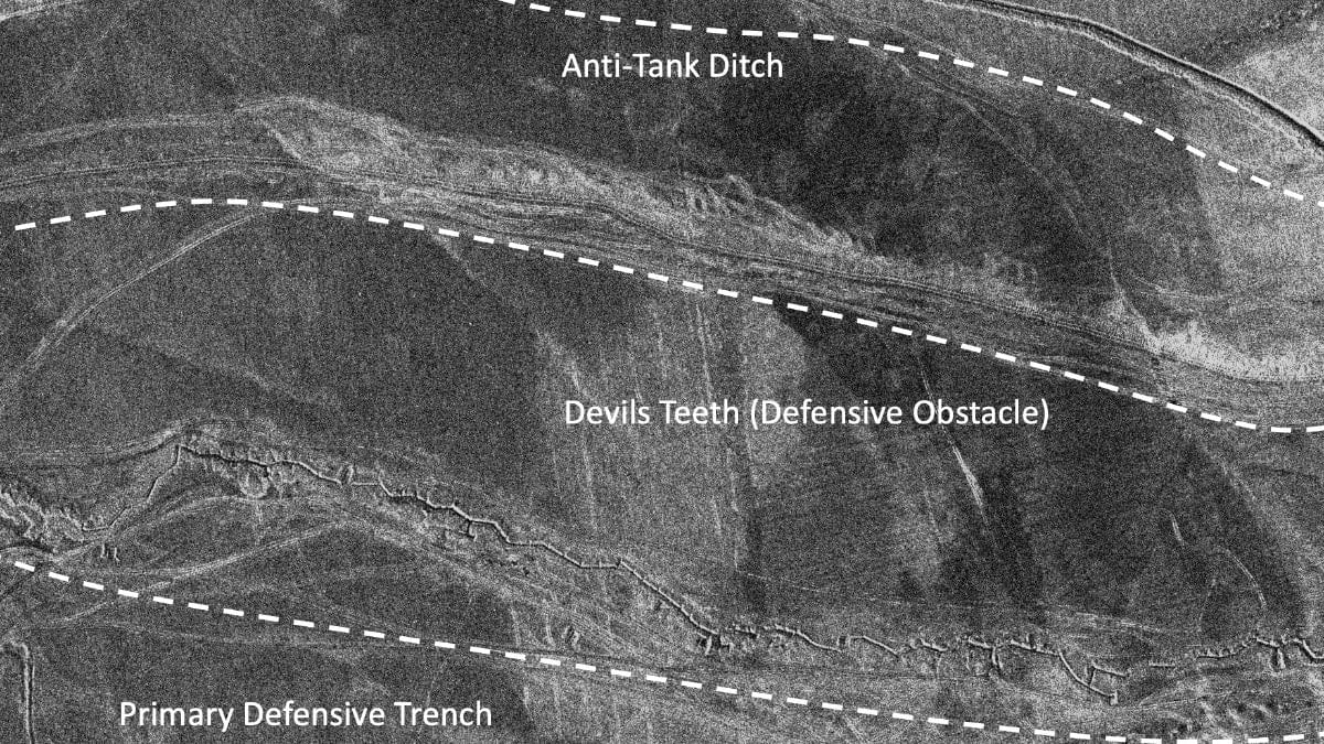 Amerikan uzay şirketi Capella Space tarafından çekilen uydu görüntülerinde, savunma hatları net bir şekilde görülebiliyor.