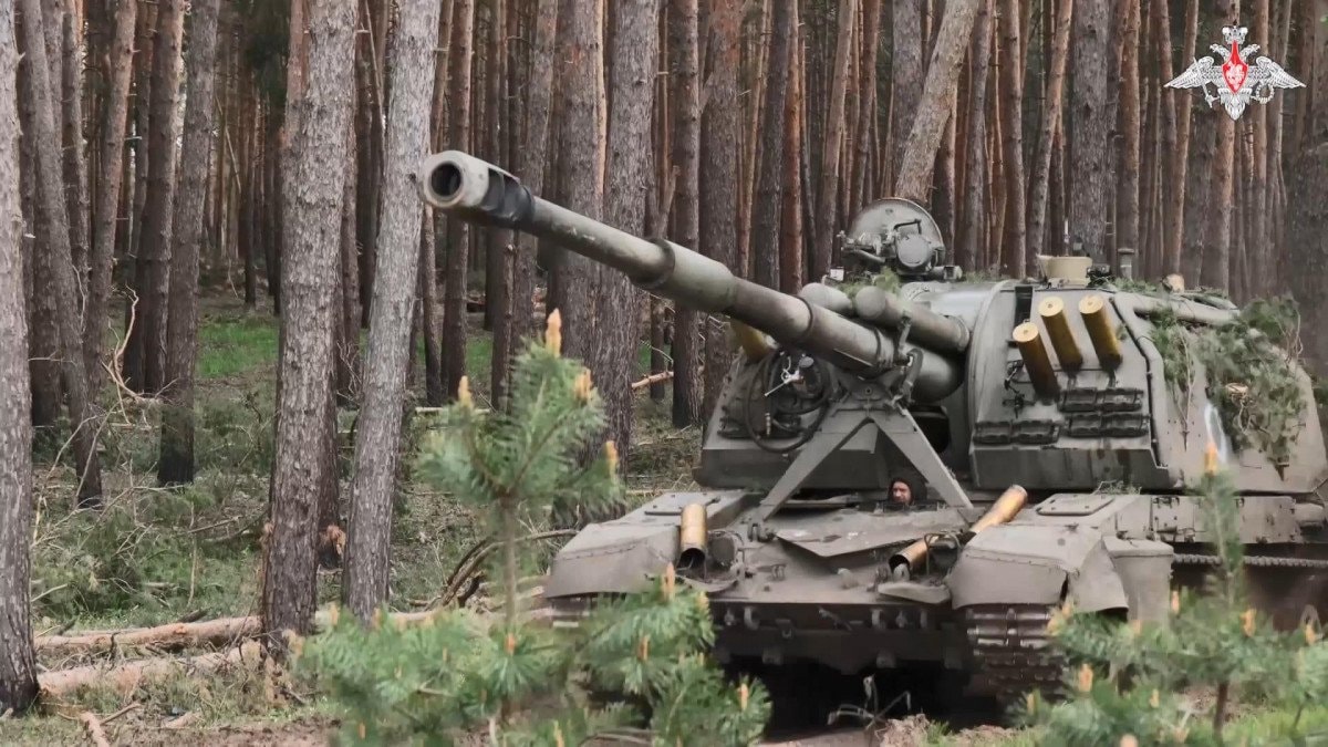 Görüntülerde, obüslerin arazide atış yaptığı anlar ve Rus askerlerinin çalışmaları yer aldı.