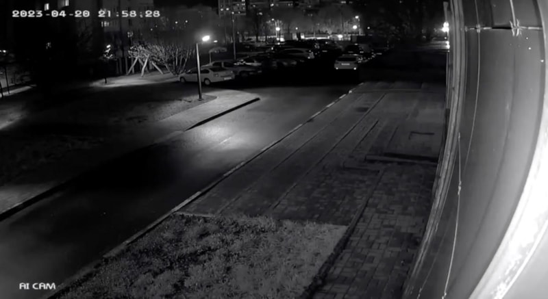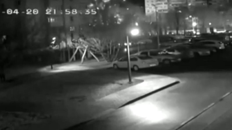 Güvenlik kamerasına yansıyan görüntülerde, gece saatlerine doğru kentin en işlek caddelerinden birinin kenarına bomba düştüğü görülüyor.