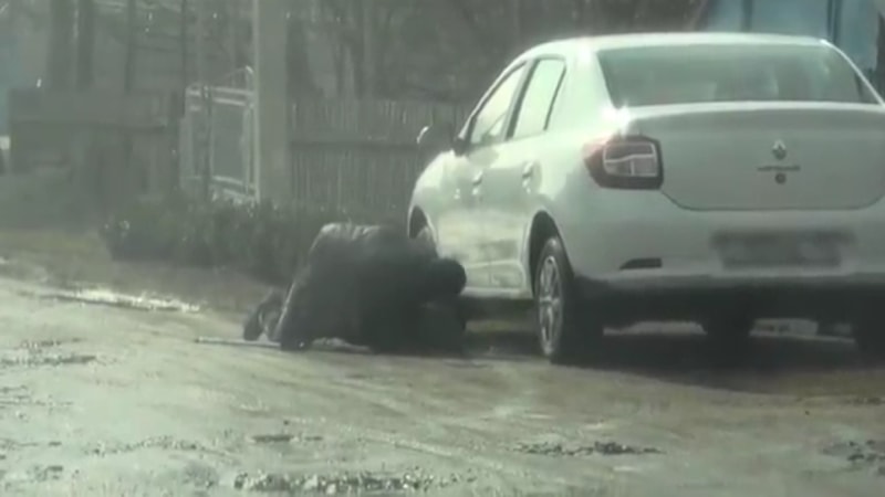 Topallayarak yürüyen adamın, aracın altına bomba yerleştirdiği iddia edildi. Ukrayna istihbaratının yönlendirdiği belirtilen şahıs, etkisiz hale getirildi.