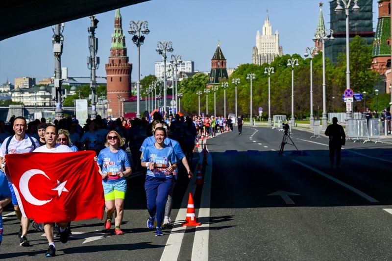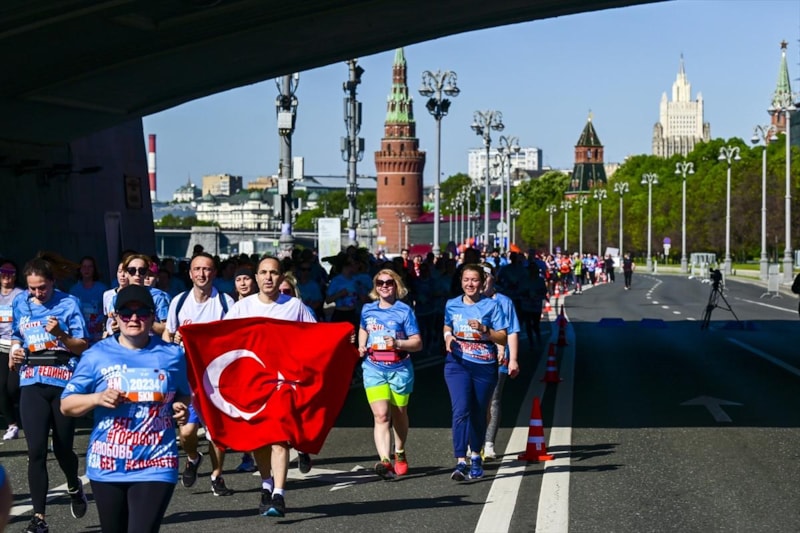 Moskova, Türk bayraklı koşuya sahne oldu. Yapılan açıklamada, "Gençlerle birlikte tüm enerjimizi Türkiye Yüzyılı'nın inşasına harcayacağız” denildi.