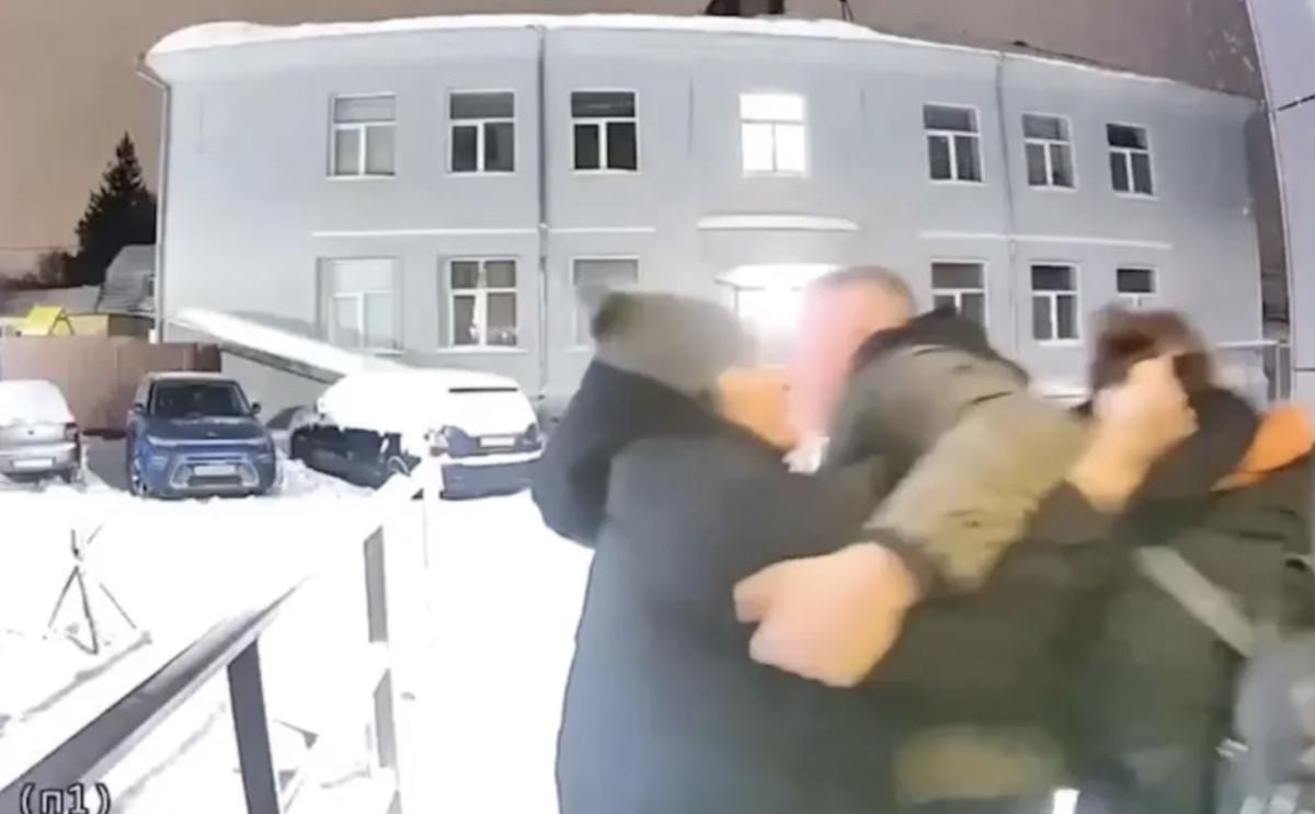 Dondurucu soğukta dışarıda bekleyen öfkeli eş, kocasına aniden saldırdı.