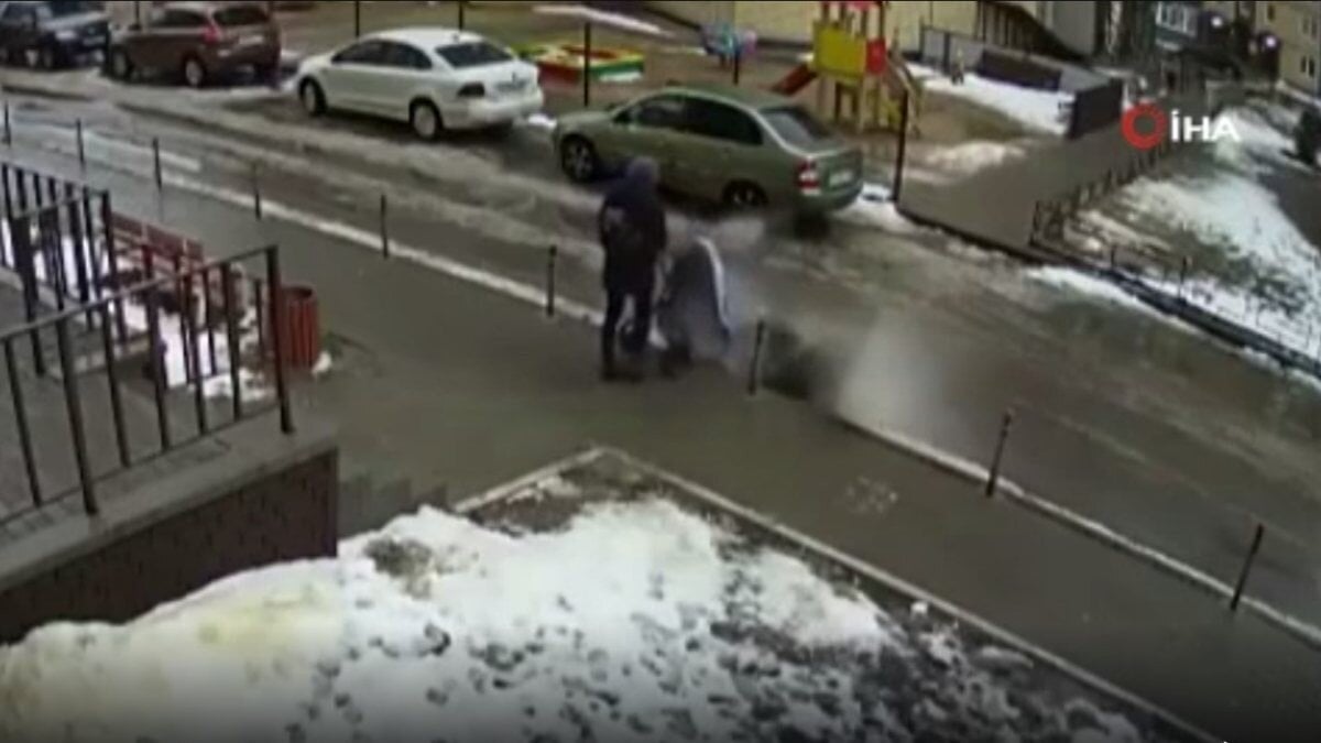 Rusya'nın Voronej kentinde bir anne, yolda bebeği ile yürürken karşıya geçmek için yolu gözlüyordu.
