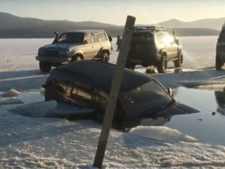 Rusya'nın doğusundaki liman kenti Vladivostok'ta, Voyevoda Körfezi'ni kaplayan buz tabakası kırılınca park halindeki onlarca araç suya düştü.