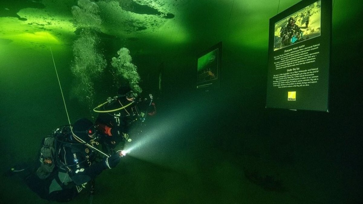 Küresel ısınmaya dikkat çekmek isteyen fotoğraf sanatçıları Viktor Lyagushkin ve Dmitriy Belenikhin, Rusya’ya bağlı Beyaz Deniz’e kıyısı bulunan Karelya Cumhuriyeti’nin Nilmoguba kentinde buz altında fotoğraf sergisi açtı.