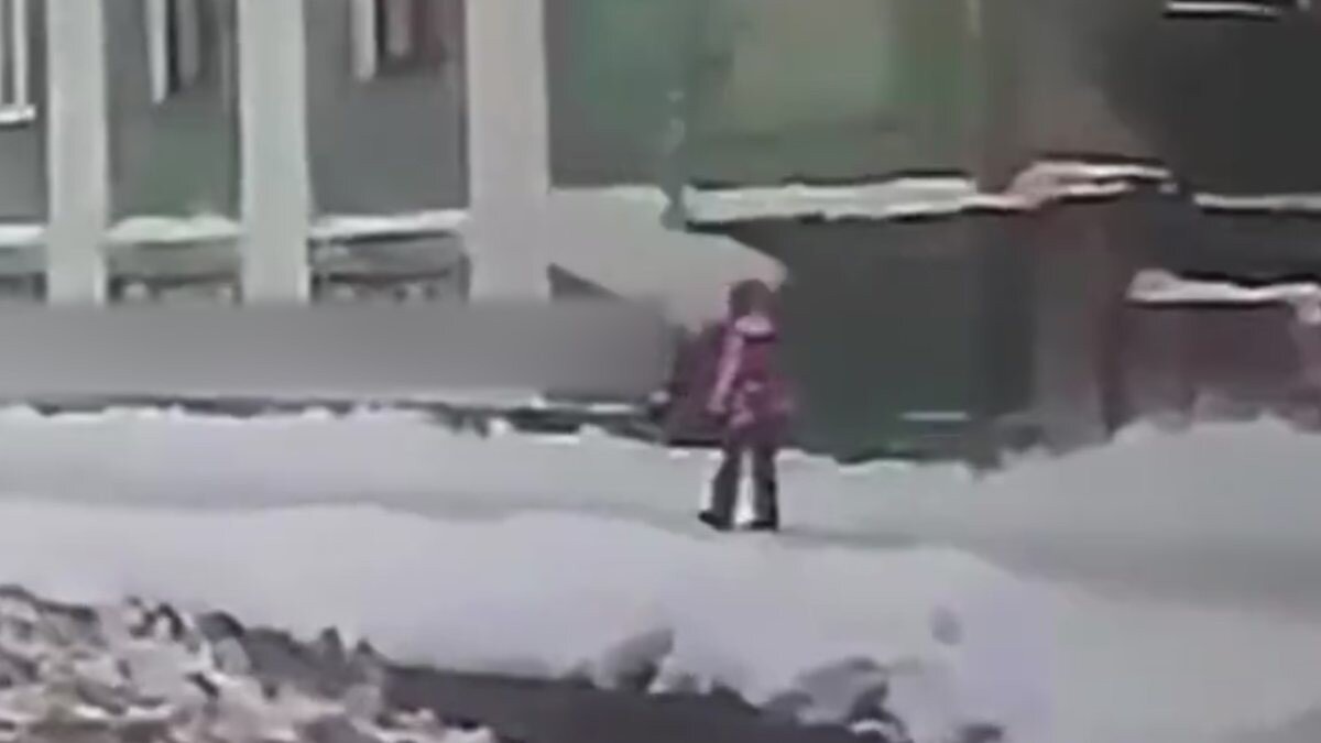 Sosyal medyada paylaşılan görüntülerde yolda yürüyen çocuk, bir binanın çatısından düşen buz kütlesinin yol açtığı tehlikeyle karşı karşıya kaldı.