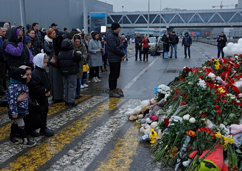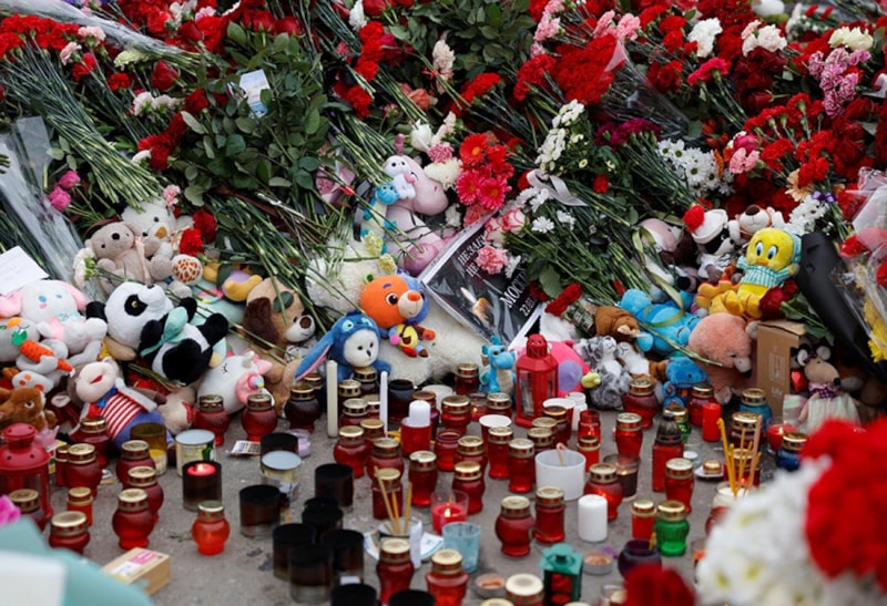 Konser salonu dışında toplanan Rus halkı, saldırı sonucu hayatını kaybedenler için yas tuttu. Anma noktasına çiçekler bırakıldı.