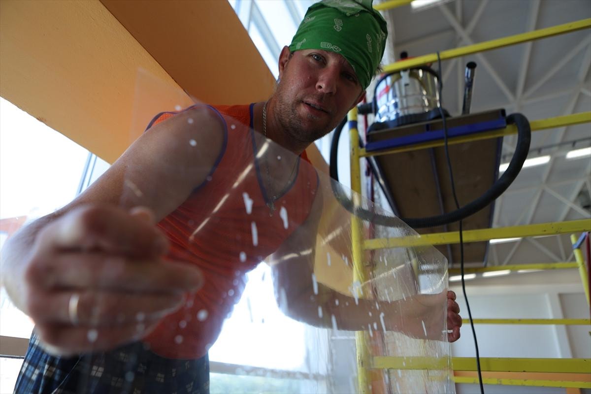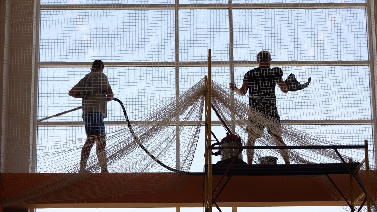 Kadınların da katıldığı çalışmalarda, okulların dış cephelerine kadar önlemlerin alındığı görüldü.