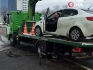 Başkent Moskova’da park yasağı olan bir bölgeye aracını çeken sürücü, aracının başından ayrıldı. Çekiciyle birlikte gelen trafik ekipleri, sürücüyü aradı ama bulamadı. Trafik ekiplerinin otoparkına götürülmek istenen araç, çekicinin üstüne yüklendi. O sırada aracının çekiciye yüklendiğini gören sürücü, koşarak olay yerine geldi.