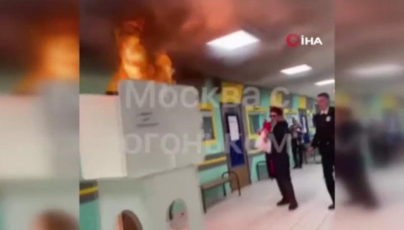 Rusya'da sabah saatlerinde başlayan devlet başkanlığı seçiminde, Karaçay-Çerkes Cumhuriyeti'nde ve Rostov'da oy kullandıkları sandığa boya döken 3 kişi gözaltına alınırken Moskova'da bir oy verme kabini ateşe verildi, St. Petersburg'ta da oy verme merkezine molotof kokteyli atıldı.