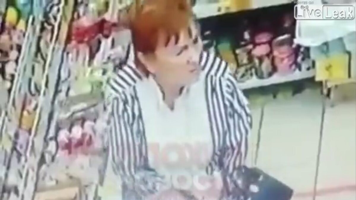 Rusya’da markete giden yaşlı bir kadın, reyonları gezmeye başladı.