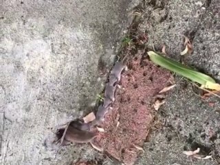 Rusya’nın Soçi şehrinde bir otel çalışanı, otelin bahçesinde anne fare ve 6 yavrusunun simetrik yürüyüşü ve yavru farelerin bir kuyruk gibi annelerini takip ettiği görüntüleri telefonla kayda aldı.