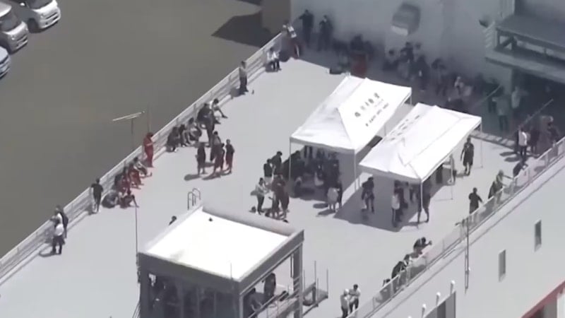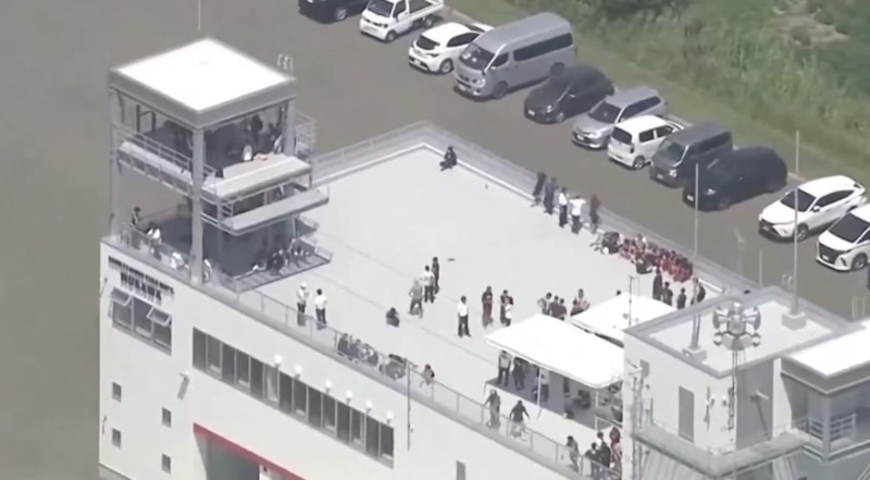 Tsunami uyarısına yanıt olarak, Japonya'nın kuzeyindeki Hokkaido'nun Mukawa kasabasında bulunan insanlar, bir itfaiye istasyonunun çatısında sığınak aradı.