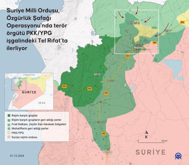 Suriye Milli Ordusu (SMO), PKK/YPG'nin Tel Rıfat-Münbiç terör koridoruna engel olmak için başlattığı Özgürlük Şafağı Operasyonu'nda Tel Rıfat ilçesindeki ilerleyişine devam ediyor.