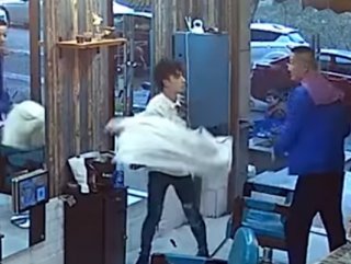 Çin'de saçının kesiminden memnun olmayan bir müşteri, dükkan içinde saçını kesen kuaföre yapmadığını bırakmadı.