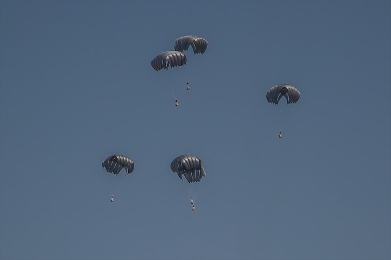 Bölgede savaş tüm şiddetiyle devam ederken Gazze halkının umudu olan yardımlar da havadan kendilerine ulaştırılıyor.