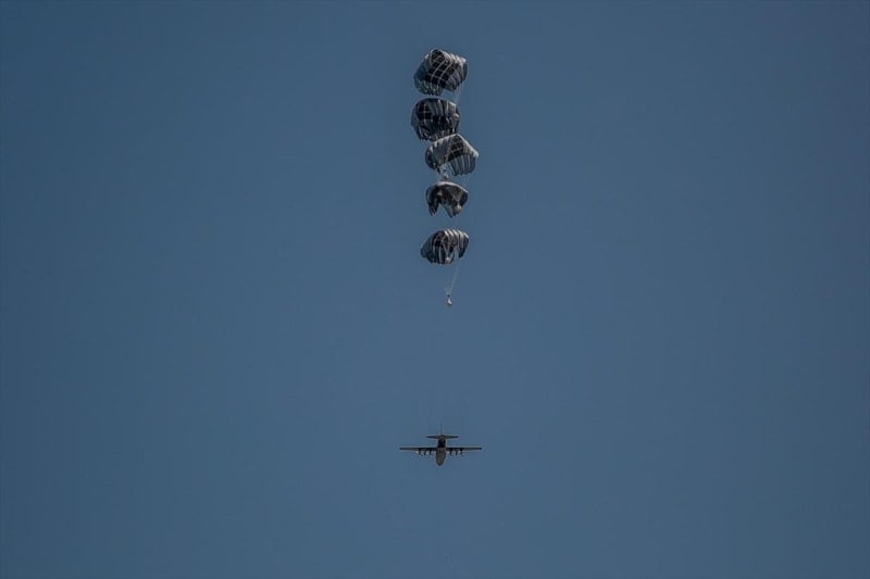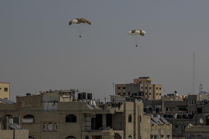 İsrail'in yaklaşık 6 aydır Gazze Şeridi'ne uyguladığı abluka ve saldırılar devam ederken Gazze kentine havadan insani yardımlar atıldı.