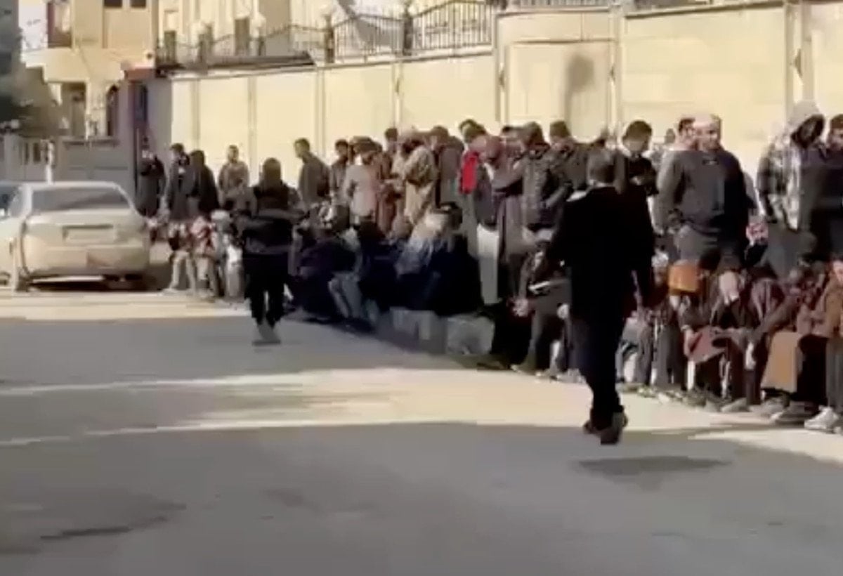 Bölgede kaydedilen görüntülerde, eski terör örgütü üyelerinin kurulan merkezin önünde uzun bir kuyruk oluşturduğu görüldü.