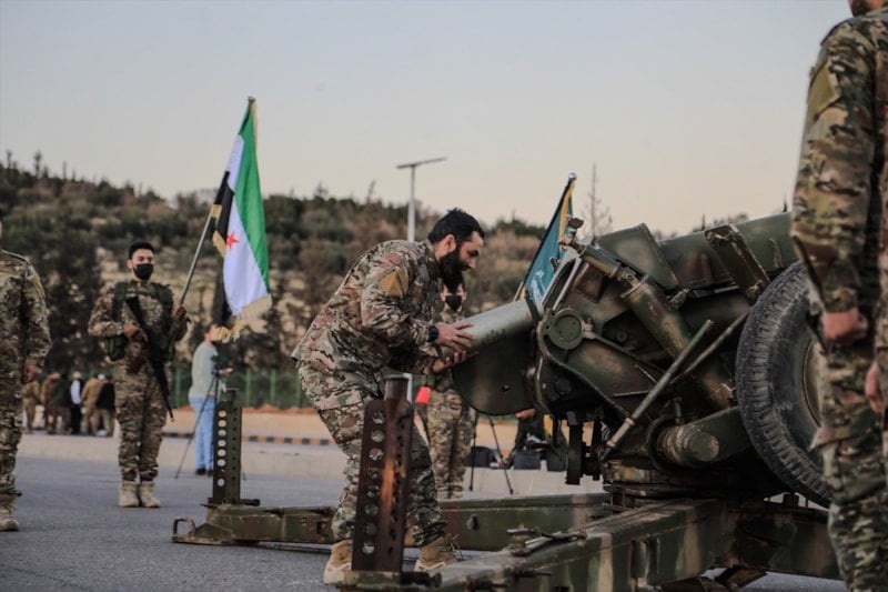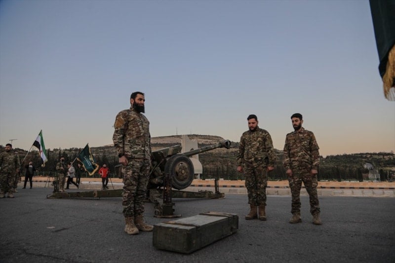 Suriye Ordusu’na bağlı birlikler tarafından düzenlenen etkinlikte, Ramazan ayının simgelerinden biri kabul edilen top atışı, iftar saatinde gerçekleştirildi.