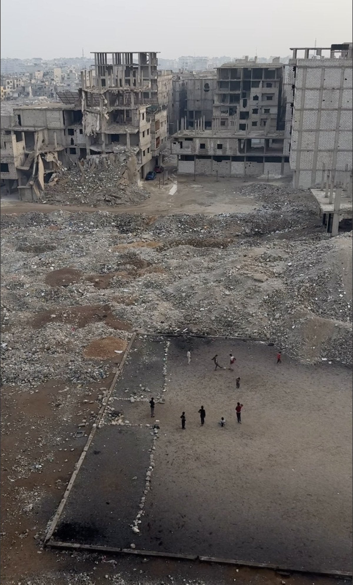 Şam kentinin Tadamon ilçesinde, Esad rejiminin bombardımanlarının sonucu olan yıkıntıların içinde futbol oynayan Suriyeli çocukların sosyal medyada paylaşılan videosu dikkat çekti.
