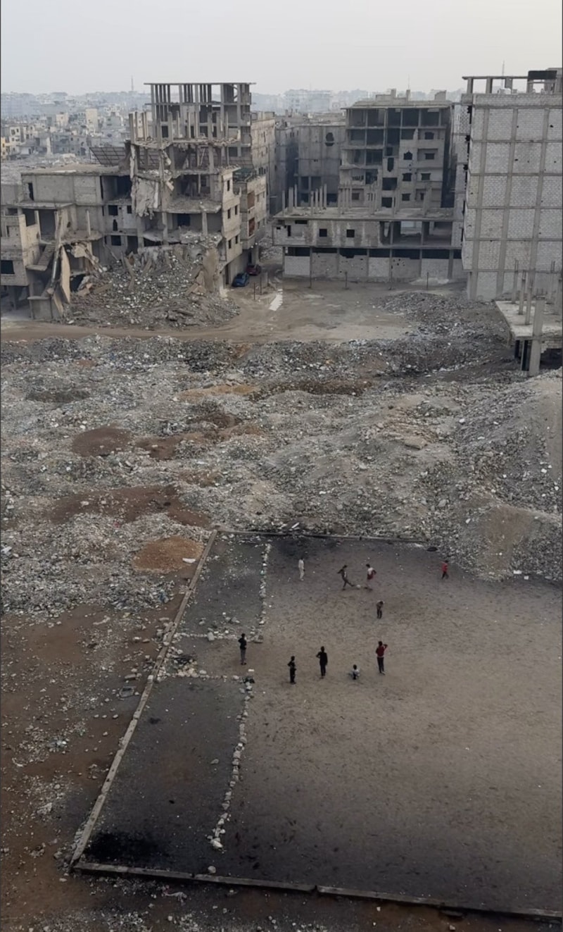 ÇOCUKLAR YIKINTILARIN İÇİNDE FUTBOL OYNADI
