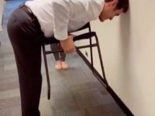 Öncelikle duvara yapışık şekilde yüzünüzü dönerek ayakta duruyorsunuz. Bu şekilde geriye doğru 3 ayak sayısı dönüyorsunuz. 3'üncü ayakta diğer ayağınızı da yanınıza alıyorsunuz. Bu anda da 90 derece eğilerek başınızı duvara yaslıyorsunuz. Ardından bir sandalyeyi yan şekilde kaldırarak göğsünüzün altına koyuyorsunuz.