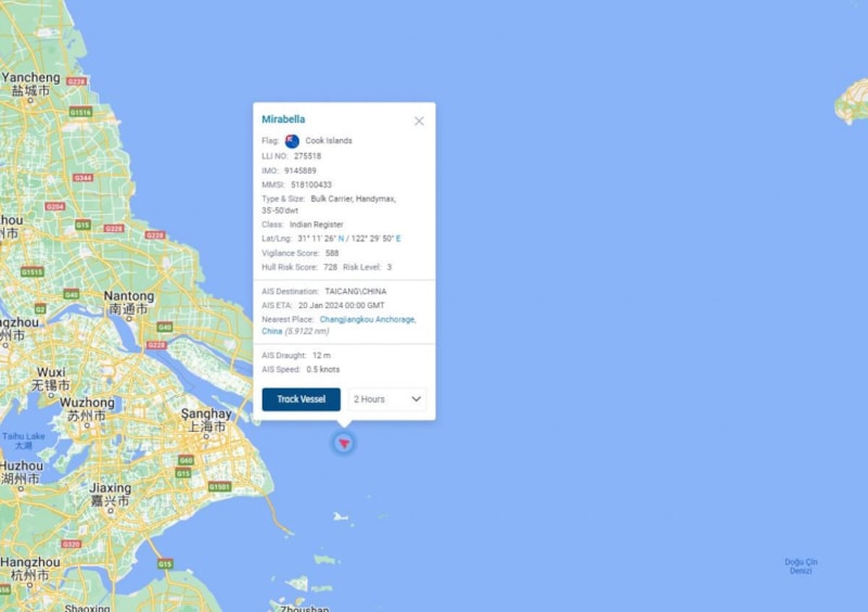 Şangay açıklarında OMEGA ve MIRABELLA isimli gemiler çatışmaya girdi.