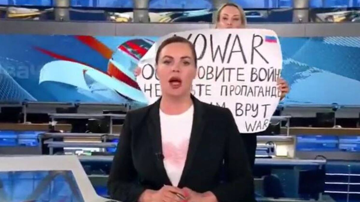 Ovsiannikova, elinde "Savaşa hayır. Propagandaya inanmayın" yazılı pankartı canlı yayın sırasında açtı.